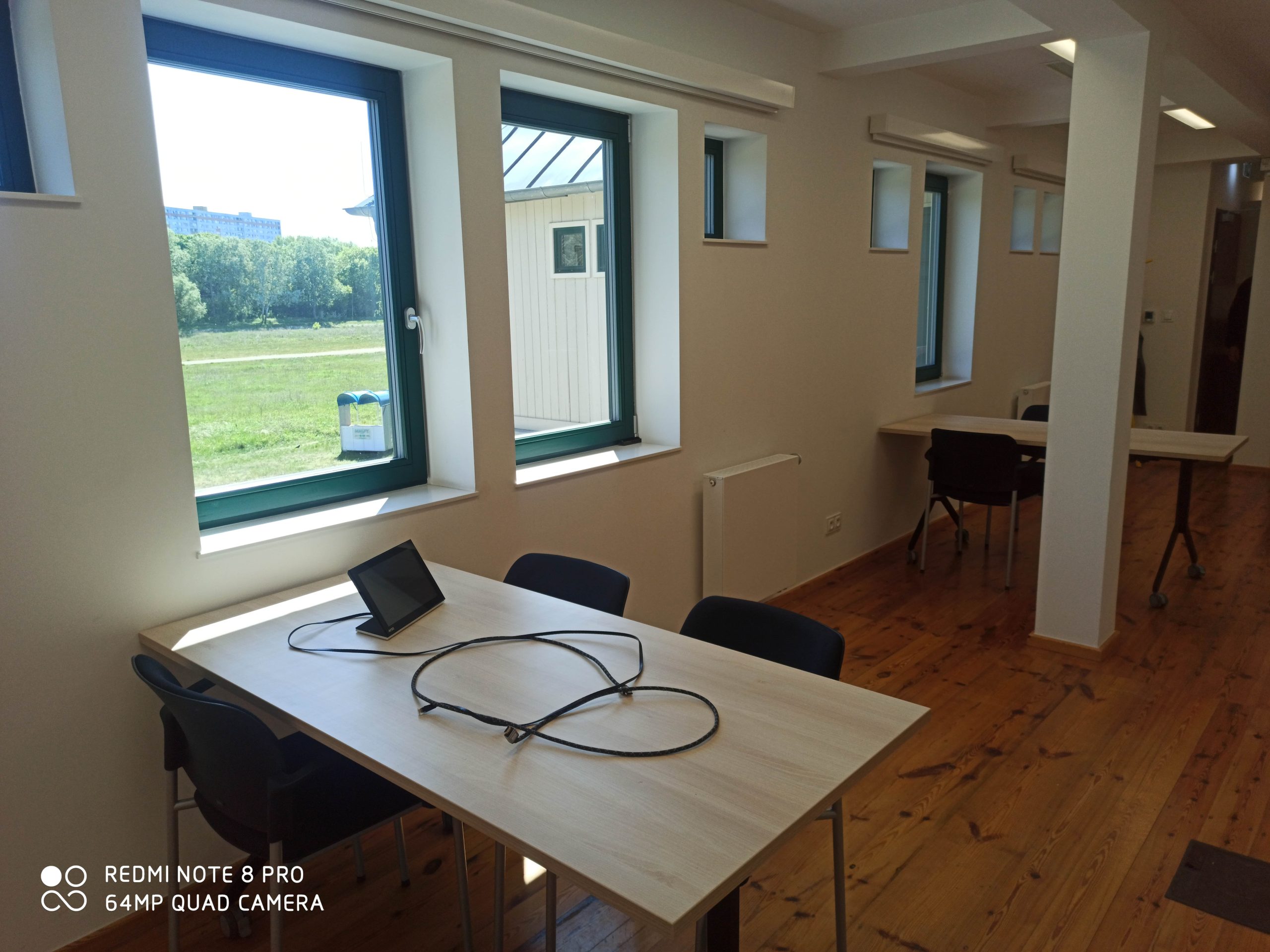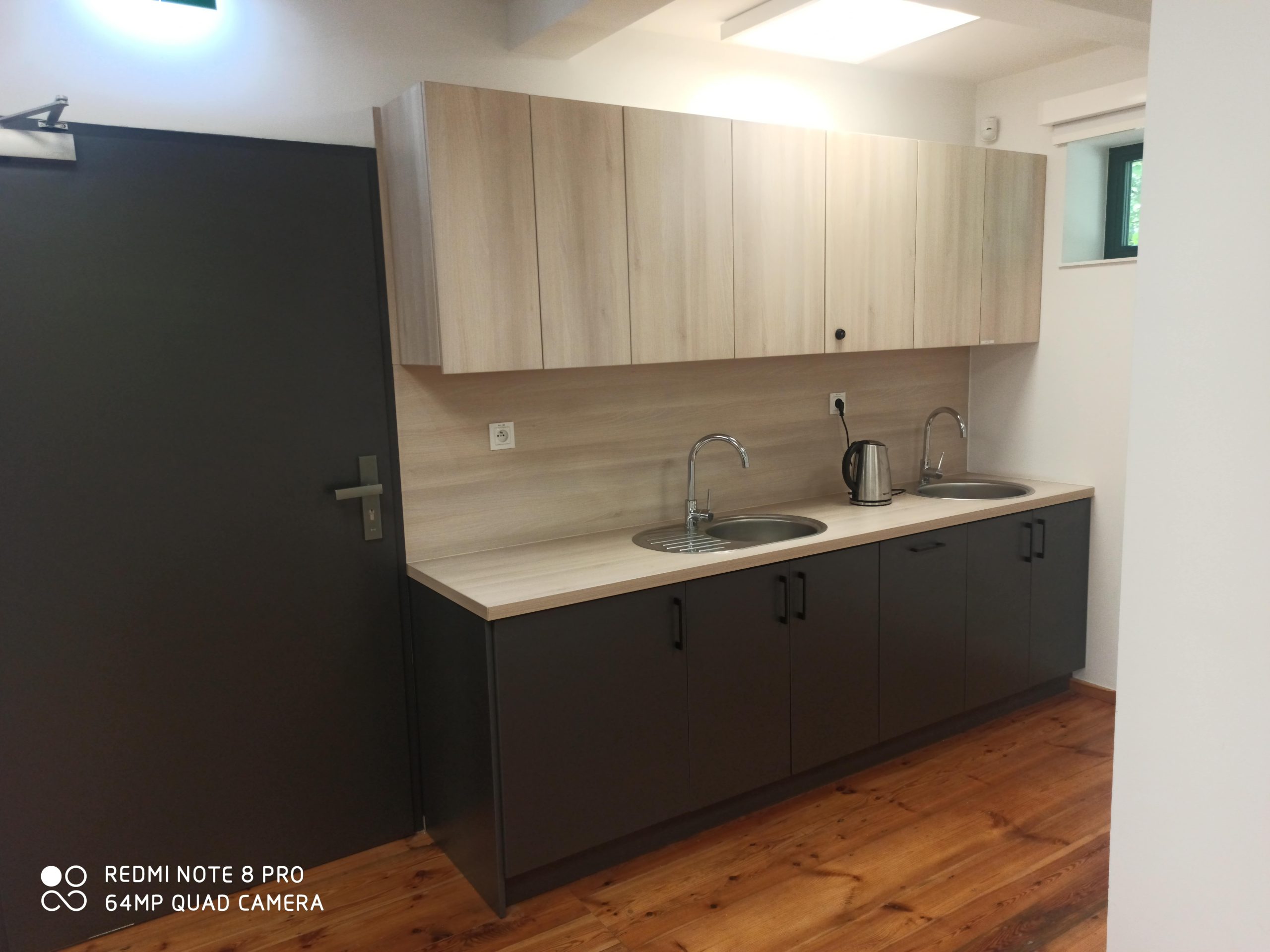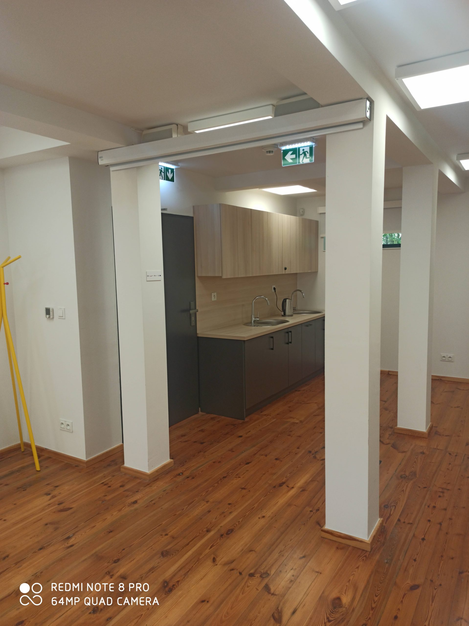 - biuro połączone z aneksem kuchennym (wyposażenie: lodówka, zmywarka)